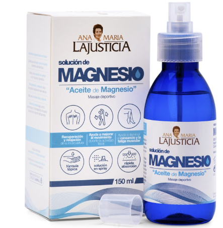 Olio di magnesio 150 ml (liquido). Una soluzione diretta con erogatore spray per il trattamento locale dei disturbi causati da danni ai tessuti, dolori muscolari dopo l'esercizio fisico, cattiva circolazione o gambe stanche.